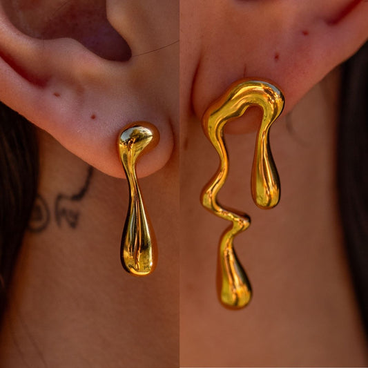 Anti-Tarnish Asymmetric Liquid Gold Drop Earrings – Modern Melted Metal Design