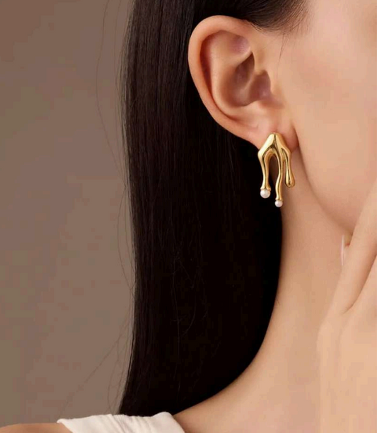 Abstract Gold Drop Earrings with Pearls | Anti-Tarnish Stainless Steel Statement Jewelry