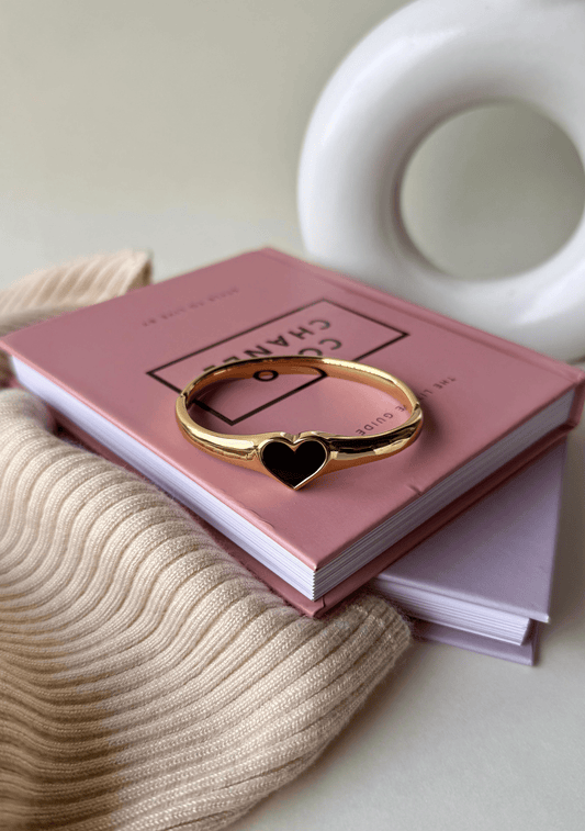 Black Heart Bangle | Stainless Steel Anti-Tarnish 18K Gold Plated Bracelet