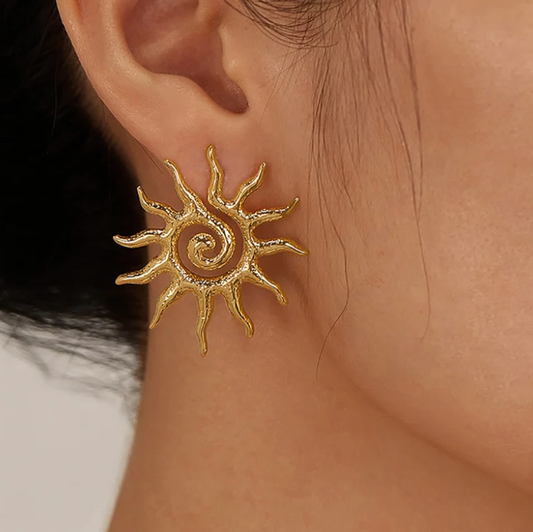 Anti-Tarnish Gold Sunburst Spiral Earrings – Boho Statement Jewelry