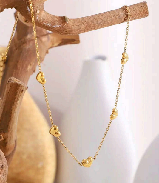 Gold-Plated Stainless Steel Layered Heart Chain Necklace for Women – Elegant Drop Design