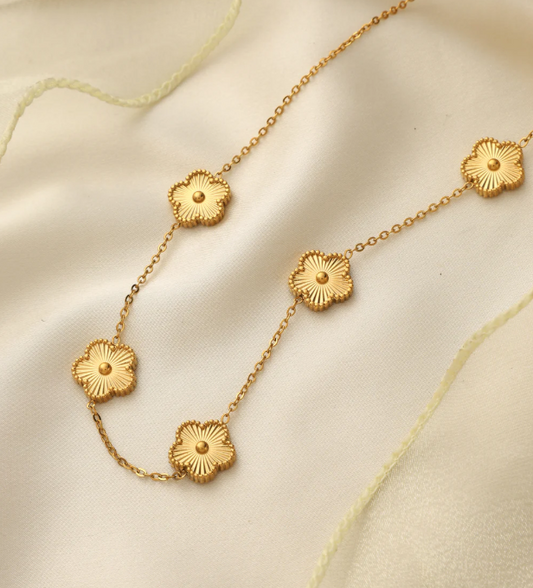 Vintage-Inspired Gold Floral Necklace with Textured Medallions