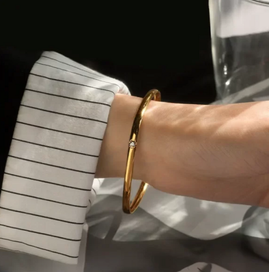 Elegant Gold Square Bangle with Diamond Accent - Sleek & Simple Design