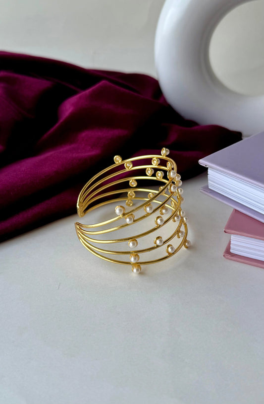 Elegant Brass Cuff Bracelet with Pearls | Anti-Tarnish Gold Plated Bangle