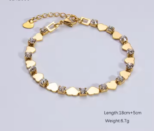 Gold Heart Bracelet with Crystal Accents – Elegant & Romantic Design