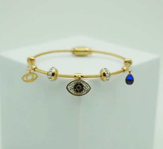 Gold Evil Eye Charm Bracelet with Diamond and Sapphire Accents