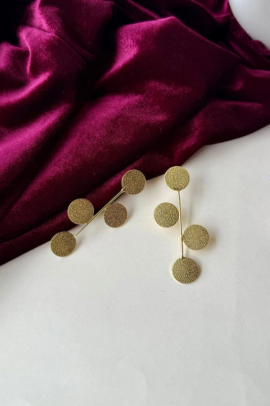 Textured Gold Disc Dangle Earrings | Brass Anti-Tarnish Modern Drop Earrings