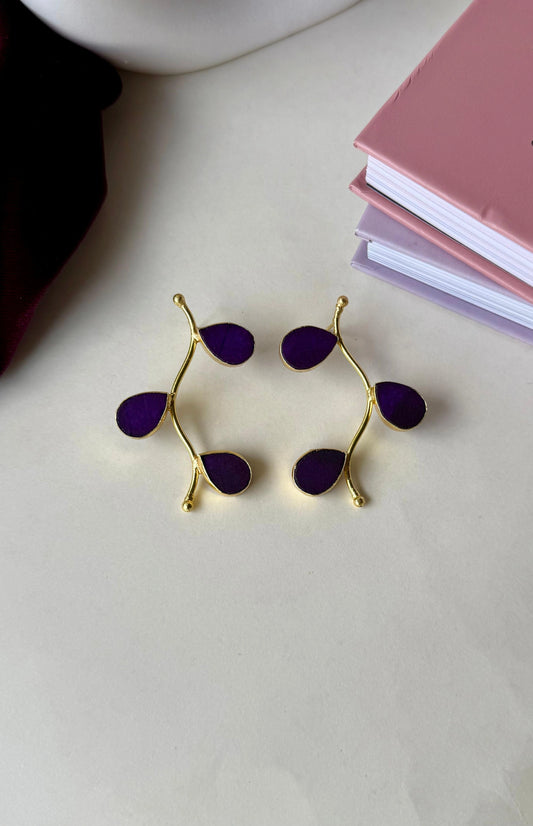 Purple Leaf Drop Earrings – Anti-Tarnish Gold Brass Botanical Statement Jewelry