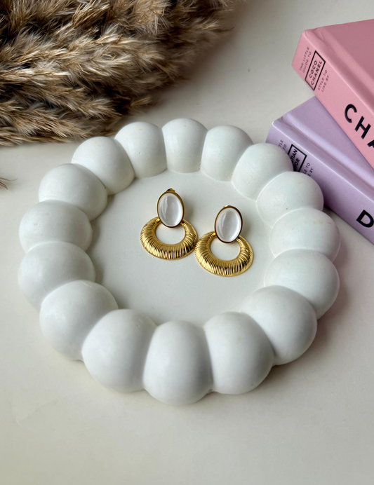 Gold Textured Drop Earrings with Mother of Pearl | Stainless Steel Anti-Tarnish Statement Jewelry