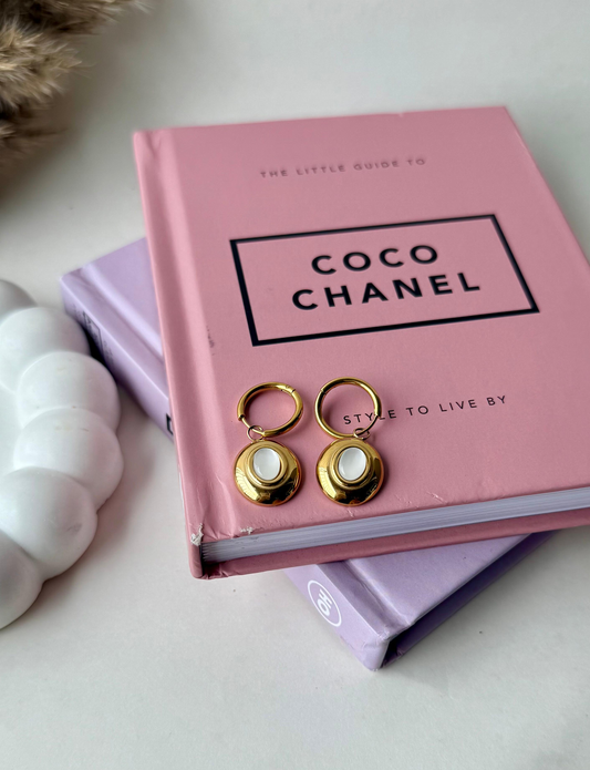 Oval Drop Hoop Earrings | Stainless Steel Anti-Tarnish 18K Gold Plated with Mother of Pearl Accent