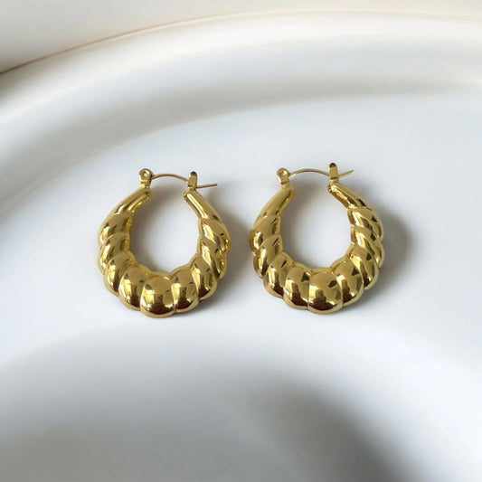 Bold Gold-Tone Twisted Hoop Earrings – Chunky Stainless Steel Spiral Hoops