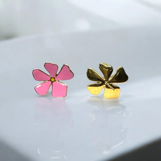 Charming Pink Flower Stud Earrings - Gold-Plated Stainless Steel - Lightweight Floral Jewelry