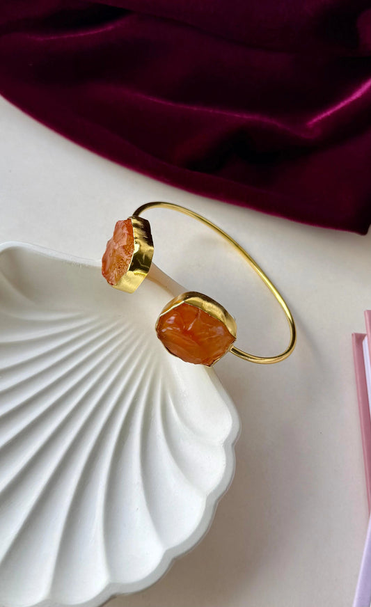 Raw Orange Stone Cuff Bracelet – Golden Brass Adjustable Bangle