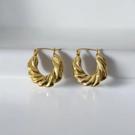 Classic Gold-Plated Stainless Steel Twist Hoop Earrings for Women – Minimalist Chunky Design