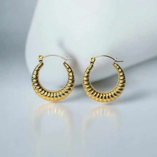 Gold-Plated Stainless Steel Textured Hoop Earrings