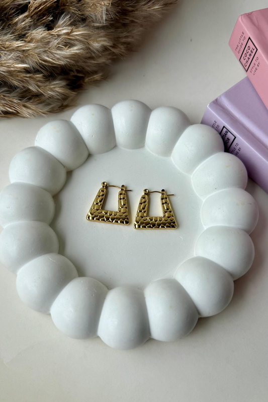 Geometric Textured Gold Hoop Earrings | Stainless Steel Anti-Tarnish Modern Statement Jewelry