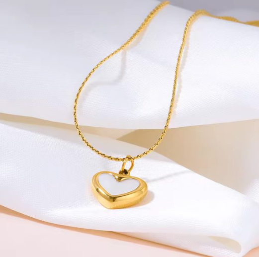 Gold Heart-Shaped Pendant Necklace with Mother-of-Pearl Inlay