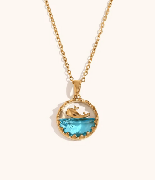 Ocean Whale Pendant Necklace | Blue Crystal Gold Chain | Anti-Tarnish Stainless Steel Jewelry