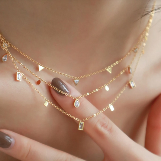 Gold Necklace with Crystal Drop Pendants – Elegant and Delicate Design