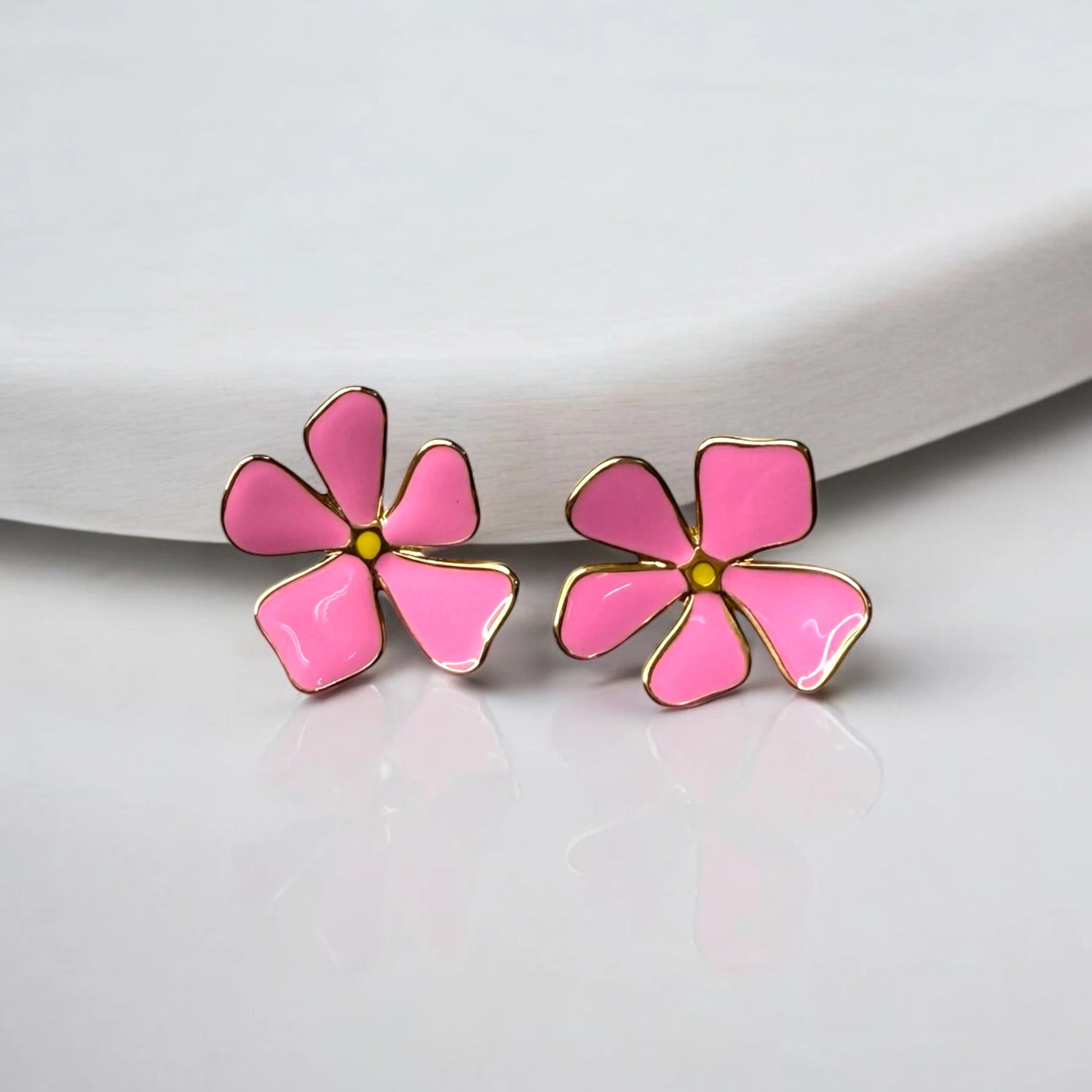 - Vibrant Pink Floral Design: These earrings feature bold pink enamel petals that bring a cheerful, stylish touch to any look.