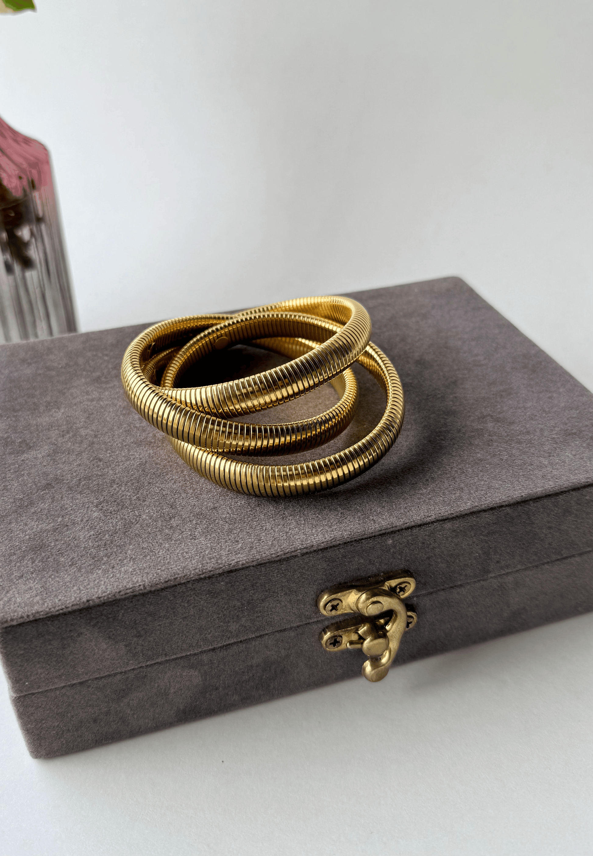 Chunky Coil Bangle Set | Stainless Steel Anti-Tarnish Gold Plated Flexible Bracelets