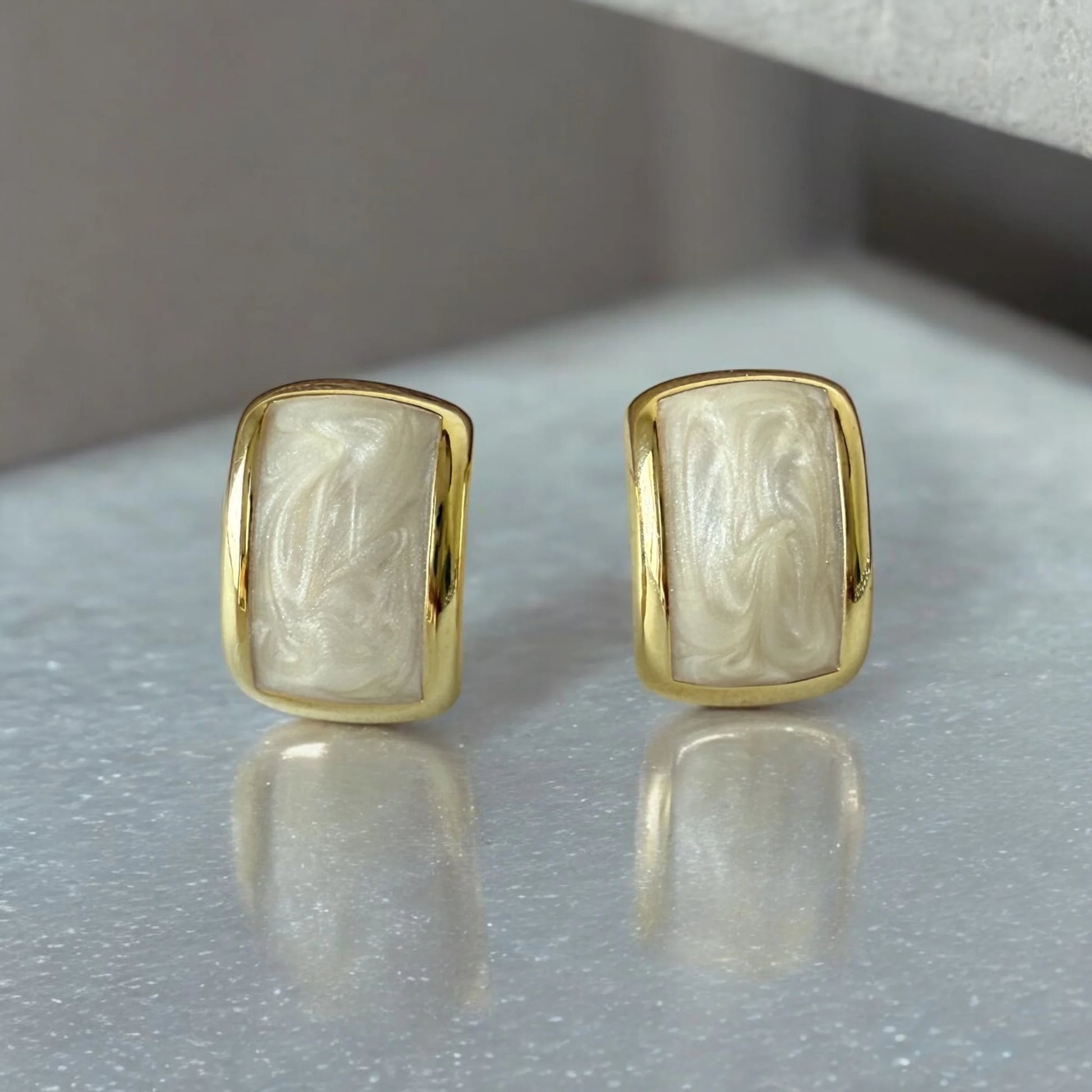 Keywords: mother of pearl earrings, gold-plated stud earrings, minimalist ear studs, rectangle stud earrings, elegant gold earrings, hypoallergenic earrings, timeless jewelry, luxury fashion jewelry, versatile earrings for women