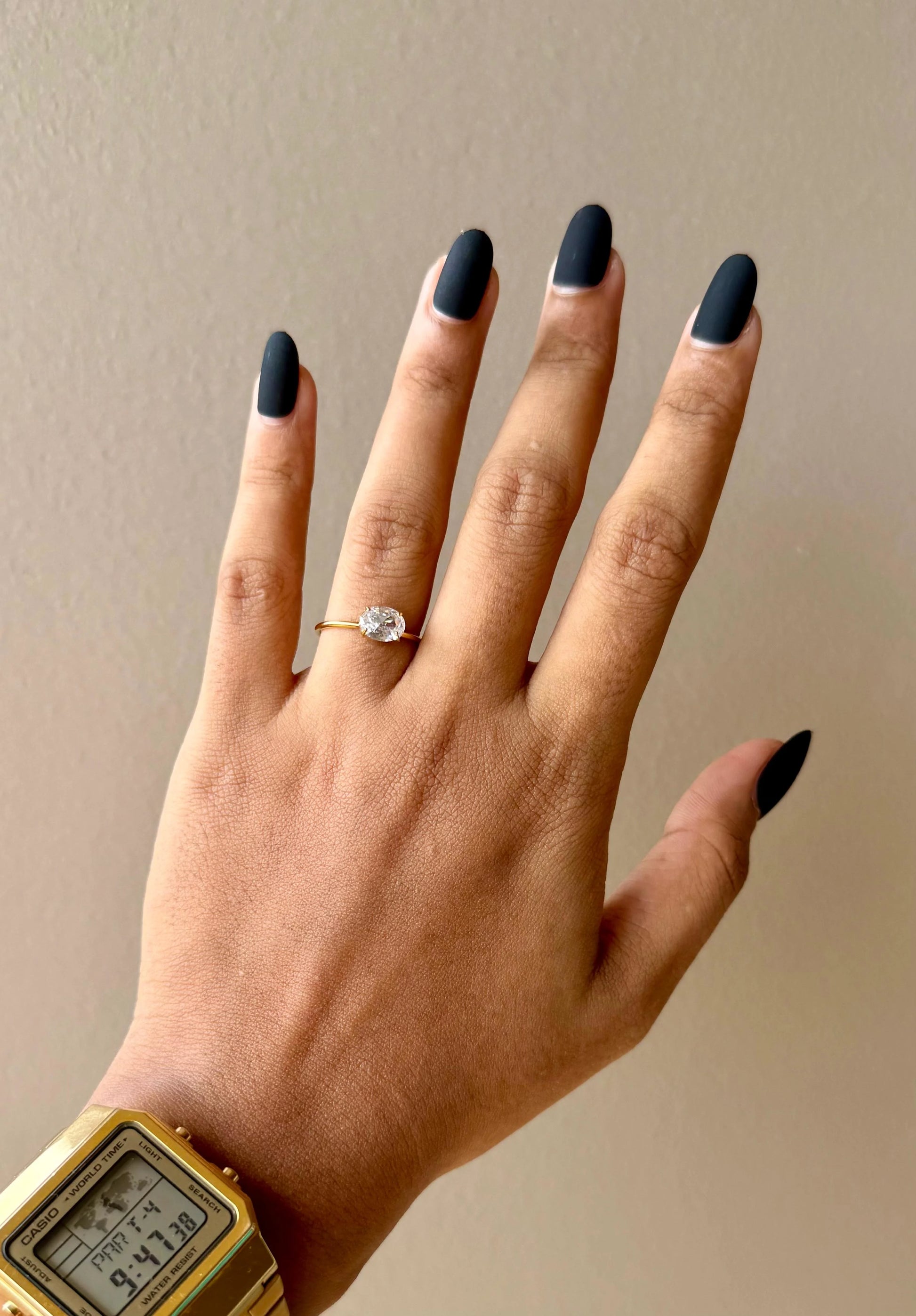 Gold Cuff Ring with Oval Crystal – Elegant and Minimalist Design (Adjustable Size)