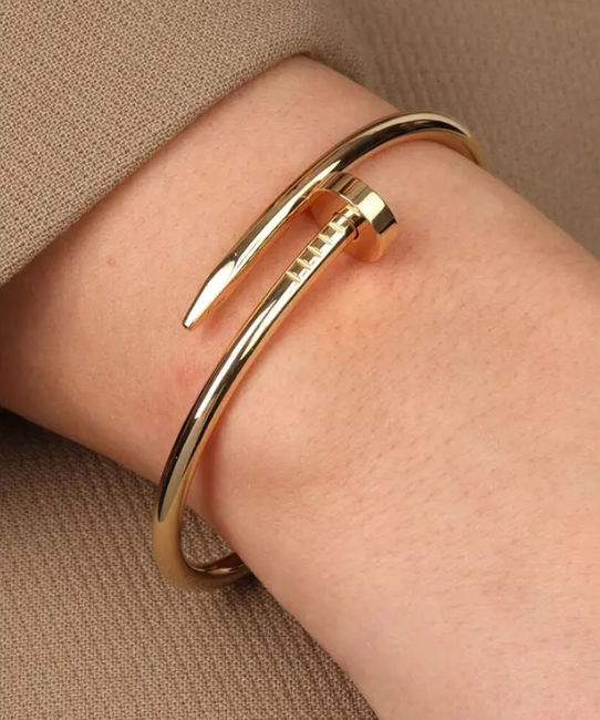 Make a bold style statement with this Gold Nail Bracelet, designed with a sleek screw-inspired shape that blends modern elegance with industrial edge. Crafted from premium gold-plated materials, this luxury-inspired bangle features a high-polish finish and a smooth, durable design that complements both casual and formal outfits.